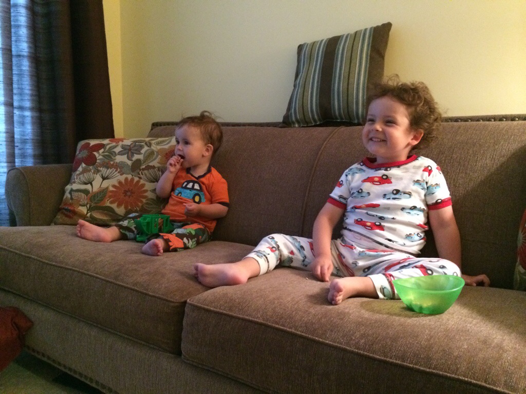 Brunch for four turned into a child safari this past weekend as we hosted our first “adult” brunch in over a month – meaning, we made something with garlic and put out cloth napkins. As per our usual start to Sunday mornings, we began with a pot of strong coffee and Deadmau5. After herding our two boys to the table, we actually managed to eat food on plates, remain in our chairs and share complete stories for about seven blissful minutes. And then abruptly, there was more food was on the floor than on anybody’s plates as Asher announced he was DONE and Everett stubbornly stood up in his high chair after unbuckling his safety belt and my husband and I scrambled around alternatively picking up each child, wiping oily fingers, and placing them at enticing toy stations in hopes that they would entertain themselves for just a minute without choking on a Lego or making stabbing motions with their plastic Chefs knives from the toy kitchen. How dare we adults enjoy ourselves and sit on our butts when there is so much wreckage to be done?