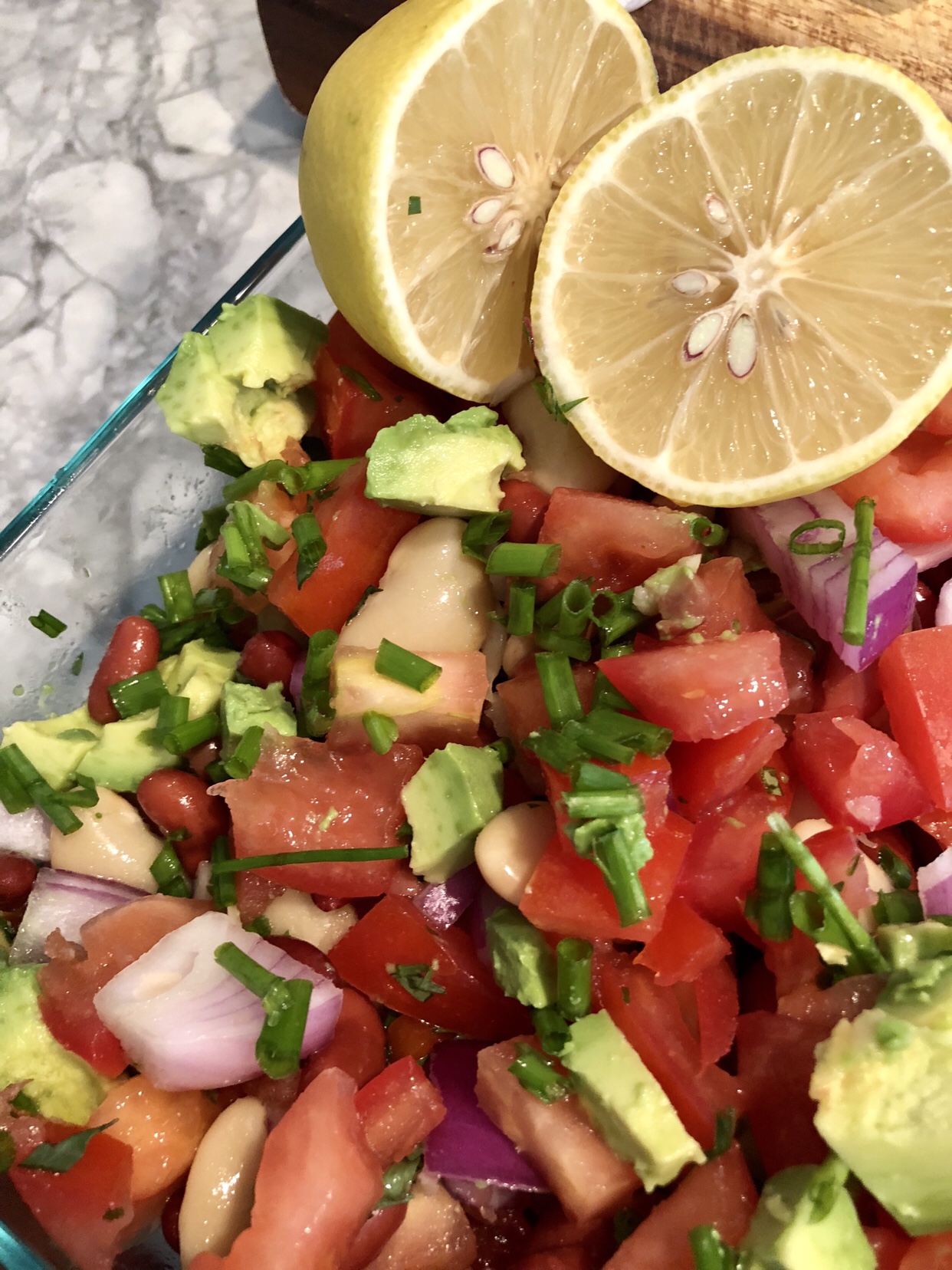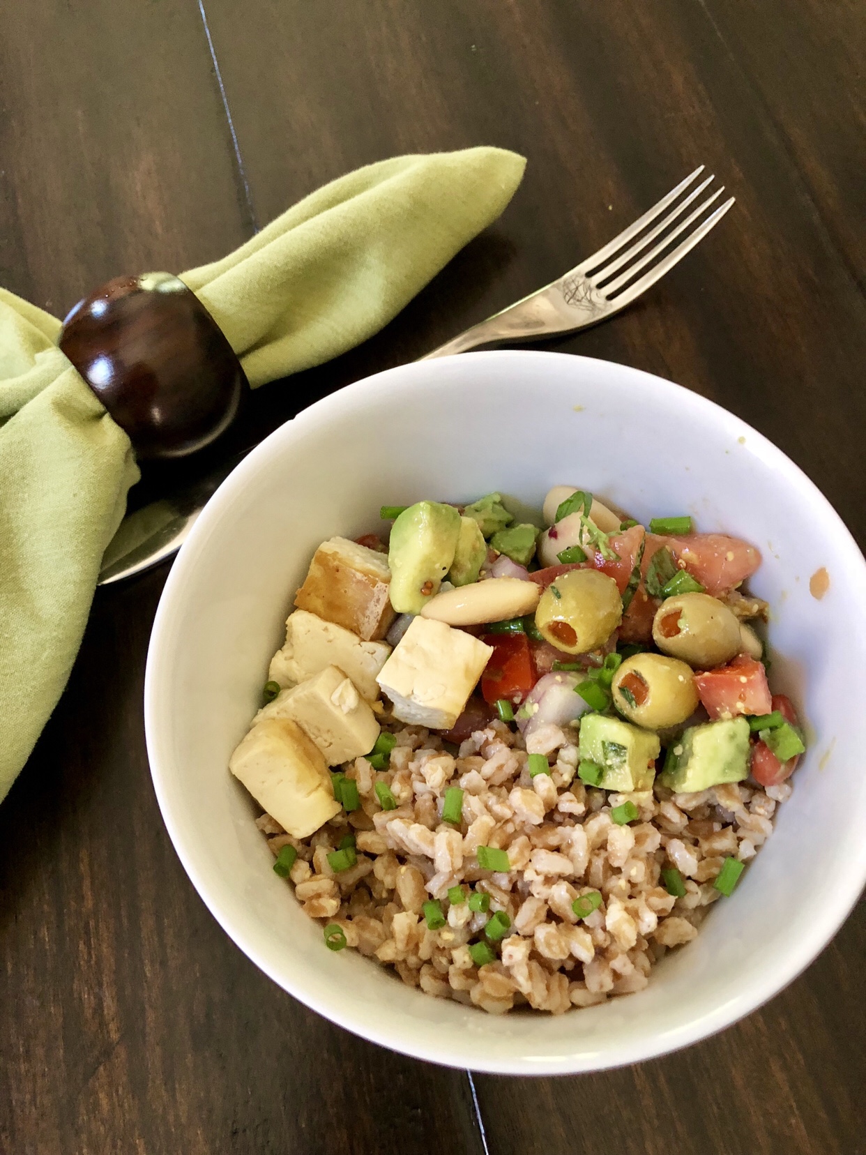 Anyway, with the recent fall weather quickly transitioning to snow, I was craving a hearty green and grain salad this week and stopped by Trader Joe’s to pick up a few of my favorites. Trader Joe’s has a nice variety of precooked, prepackaged items that really make a great dish when you’re in a pinch, either for one or served on a large platter for a holiday crowd. This time I used their Cruciferous Crunch Salad as a base with a selection of cooked beets, kalamata olives, Persian cucumbers, chickpeas, cherry tomatoes, farro and a giant bag of fresh haricot green beans which I blanched for 5 min but could also be eaten raw. Other variations I love from their refrigerated section include the precooked brown lentils and the fingerling potatoes. In place of farro you could also throw in some quinoa or rice. I topped it off with some lightly pan fried Lightlife bacon for more of a cobb salad flavor. I typically use balsamic vinegar for dressing, but tahini mixed with lemon juice is pretty amazing if you don’t want anything dairy-based. I also grabbed a little ginger lemon kambucha back tea for $2.99 – mwuah! Love it. So no real recipe today folks, just some tidbits on great plant-based food options in a one-stop shop that I enjoyed this week.