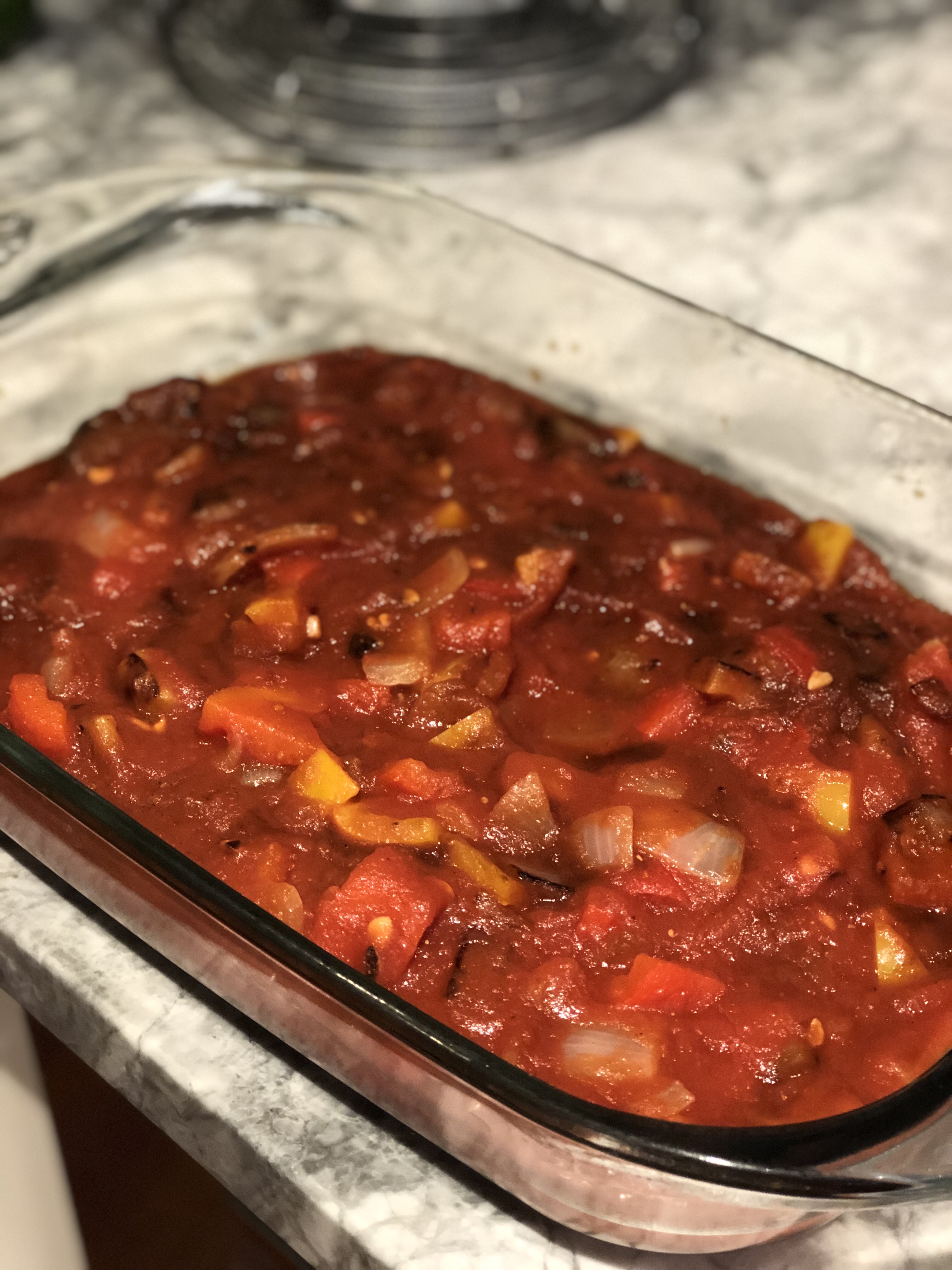 - 3 cups mixed grilled vegetables (this week I used eggplant, zucchini, red pepper, asparagus)